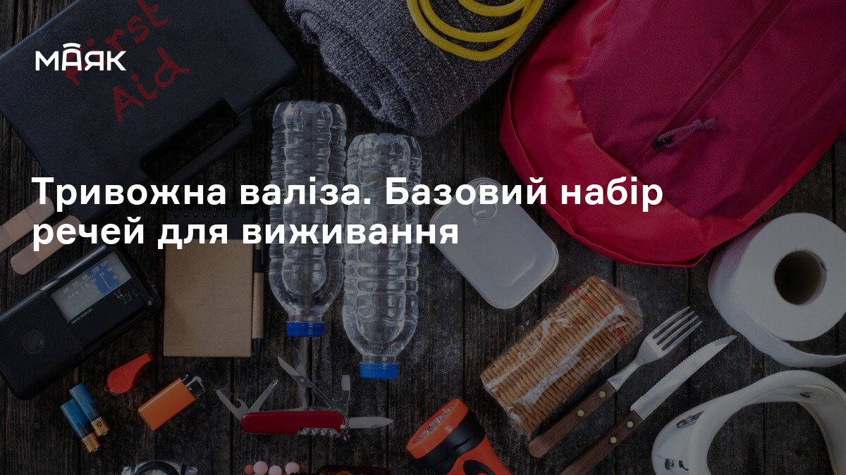 2 пляшки води по 1,5 л на людину, фільтр для очищення води, пальник газовий, балон газовий 230 г (бажано без бутану), казанок алюмінієвий, термокружка, ложка металева, запальничка газова;