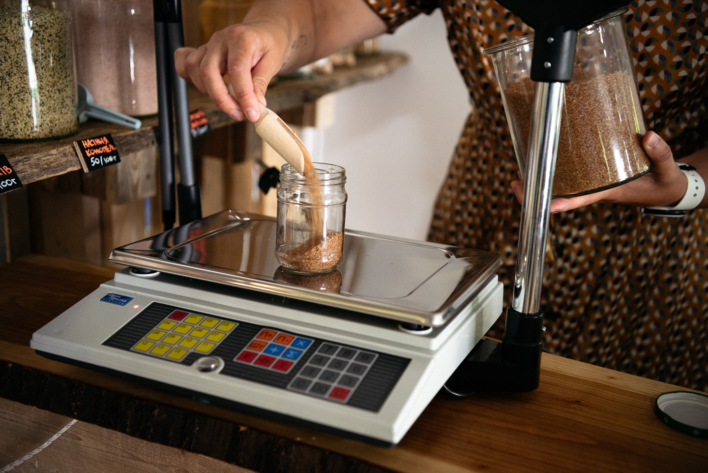 - Сыпучие (например, булгур и копченая соль) или жидкие товары (санитайзер, крем для тела) продаются на развес, минимального веса нет.