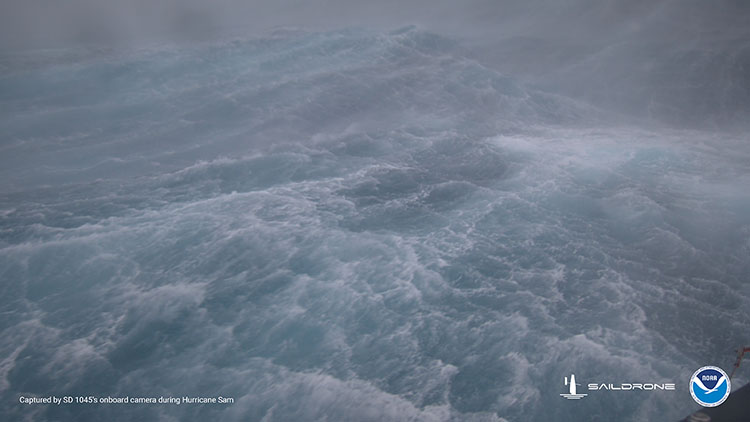 Американская компания Saildrone и Национальное управление океанических и атмосферных исследований (NOAA) опубликовали видеозаписи изнутри урагана в Атлантическом океане. Они направили дрон прямо в центр урагана по имени «Сэм». Его отнесли к 4-ой категории.