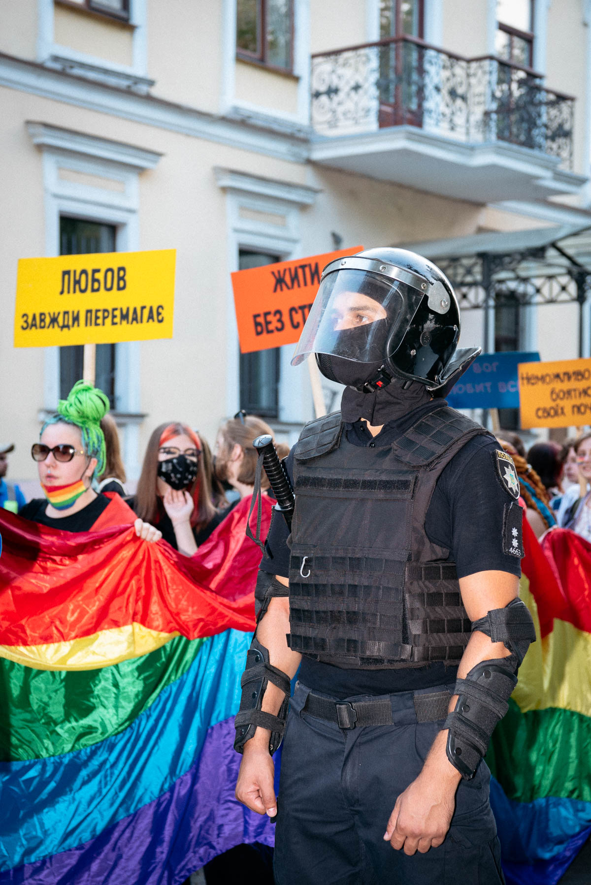 Противники марша скандируют «Бог, Батьківщина, Патріархат!», «Смерть ЛГБТ» и «Ганьба!». Но от кордона спецназа предпочли держаться на некотором расстоянии, не предпринимая попыток его прорвать.