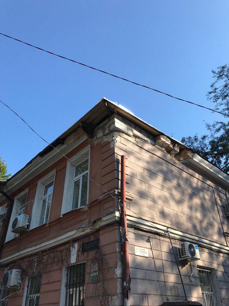Поврежденный угол дома пока заложен кирпичами, но выглядит конструкция не особо безопасно. Надеемся, что это лишь временные меры до начала ремонта здания.
