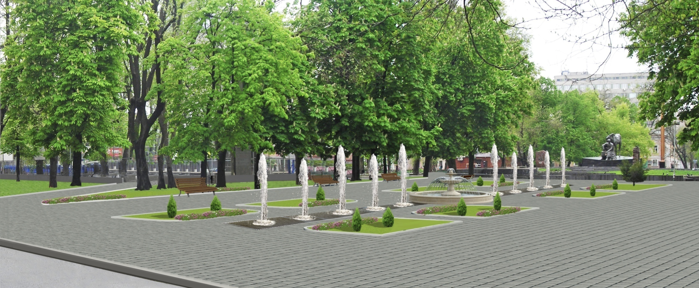 Как видно на слайдах презентации проекта благоустройства, в центре сквера появится алле из невысоких фонтанов, – вроде той, что находится на набережной у дельфинария. Здесь и далее – слайды из презентации проекта благоустройства