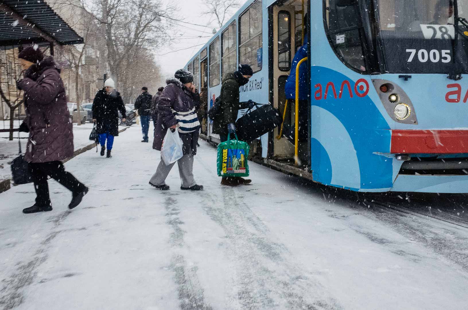 Уже ближе к Пересыпскому мосту кто-то хлопает меня по плечу и вынуждает вынуть из ушей наушники. Молодой человек ростом под два метра и крепкого телосложения говорит: «Приехали. Мост». Все уже заметено снегом. Рослый парень зачем-то добавляет, что «поезда в Москву уже не ходят. Запретили». Пересыпь –– конечная остановка 7 трамвая, и я быстро выхожу.