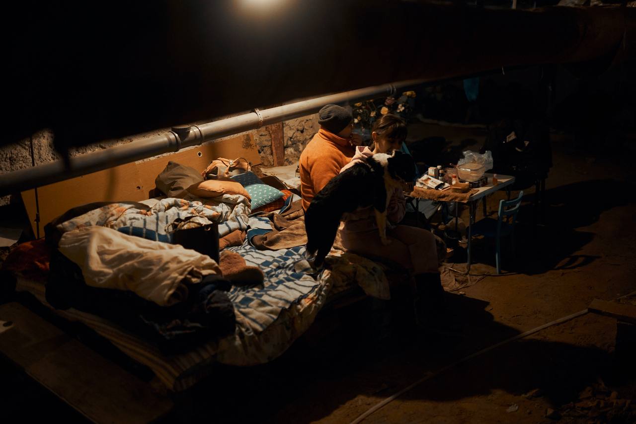 «Та тихо ти, дай сказати… Я тут вже три тижні. Їхати мені нема куди, тому і сиджу», — розповідає Анастасія, тримаючи у руках шпіца на ім’я Барон. «А в мене ось після вчорашнього обстрілу дитина не витримала, довелось сюди тікати», — перебиває її Людмила. Вона з донькою жила поруч з Інститутом державного управління імені В. Н. Каразіна. 18 березня будівлю закладу було зруйновано російською ракетою.