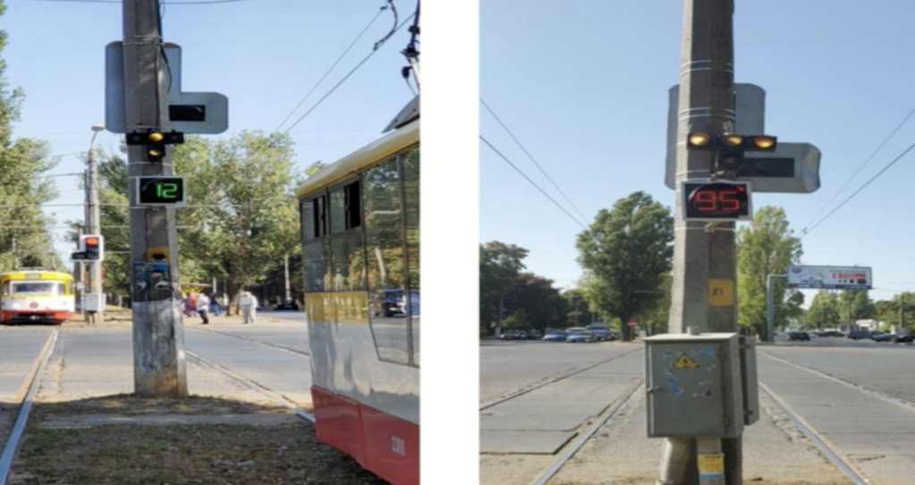 На светофоре есть табло отсчета времени, специальный датчик движения и контролирующее устройство. Датчики распознают приближение трамвая. Пока его нет, светофор работает в обычном режиме — регулирует пешеходные и транспортные потоки. Как только появляется трамвай, система дает ему зеленый свет. Таким образом обеспечивается минимальное время ожидания.