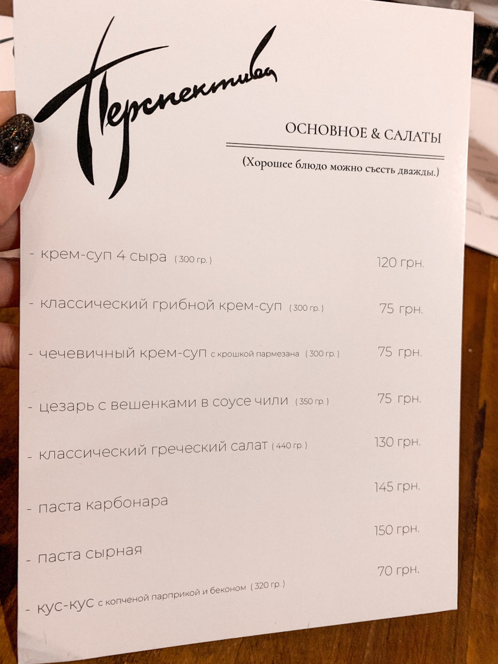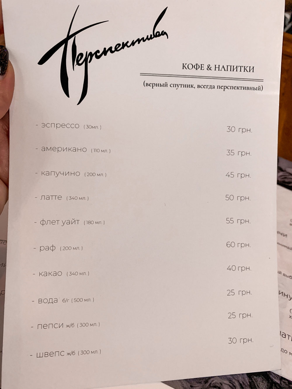 Отметим, что приятное отличие «Перспективы» от многих заведений Одессы — комфортная температура внутри: не прохладно, но и не хочется, как во многих других кафе, почти сразу раздеться до футболки.